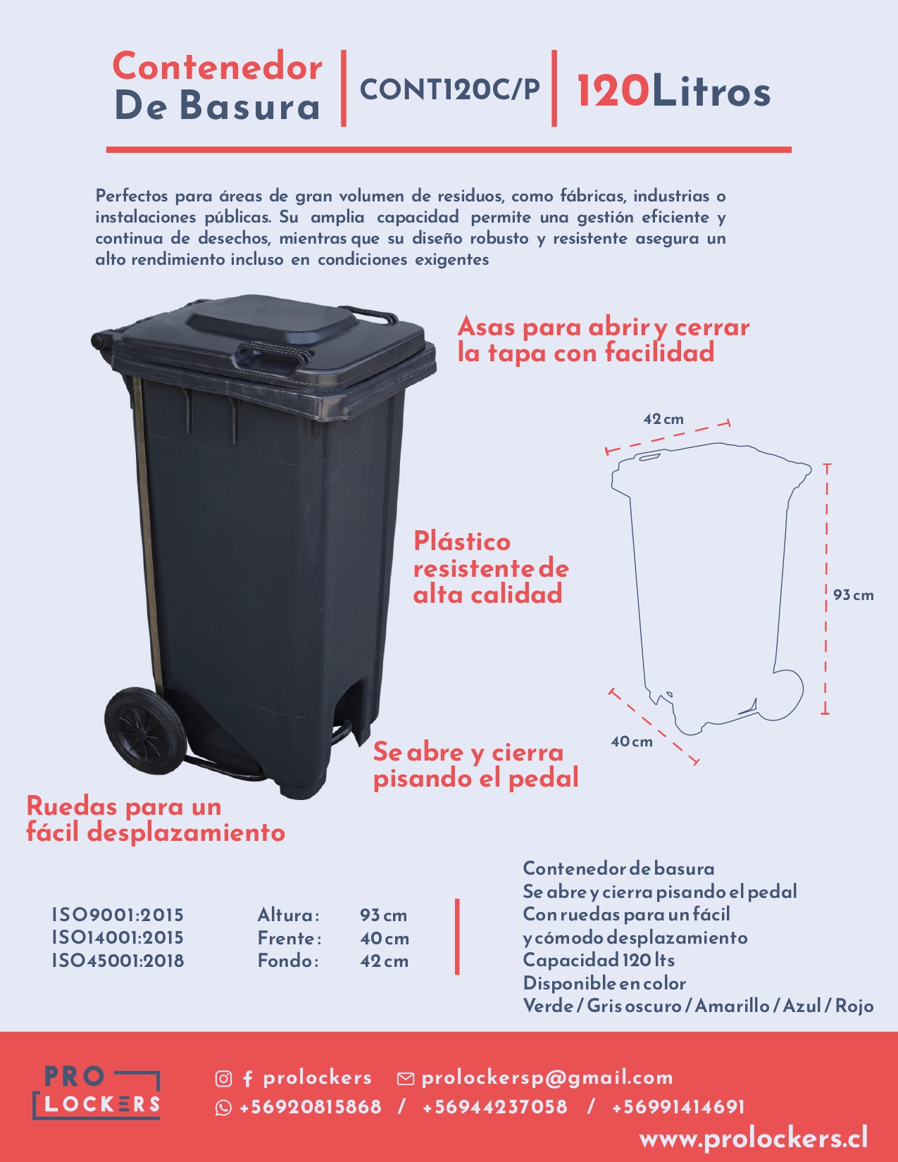 OnloopEl contenedor de basura plástico de 120 litros con ruedas está diseñado para la recolección y manejo de residuos en entornos institucionales, municipales, industriales y de servicios generales. Su capacidad lo hace adecuado para operaciones con alto volumen de residuos, reduciendo la frecuencia de vaciado y optimizando las tareas de traslado interno.